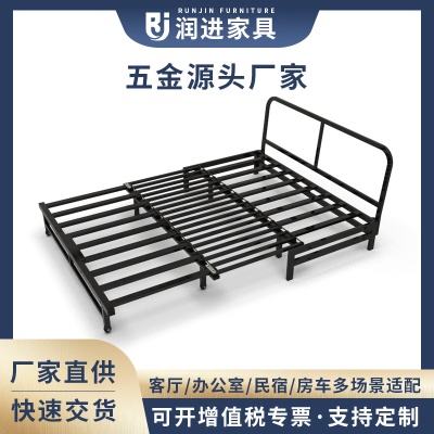 三节伸缩推拉抽拉式金属床架两用沙发床铁架多功能铁艺承重沙发架