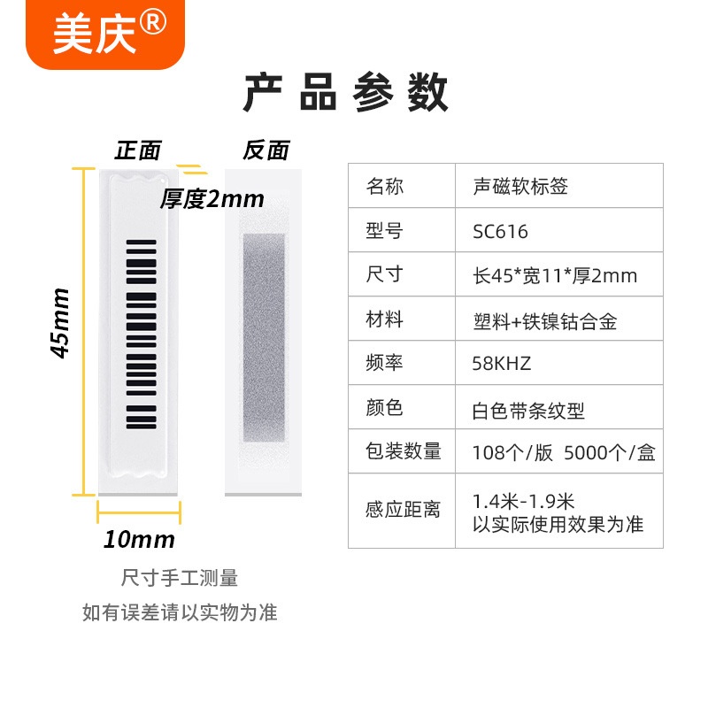 商品名称:美庆声磁软标签SC616磁贴定制超市防盗磁条报警标签58K