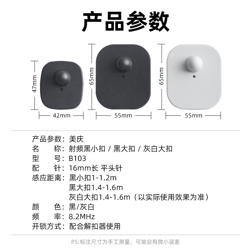 商品名称:美庆防盗大小方磁扣射频服装超市店铺磁扣硬标签配件