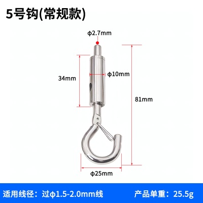 5号钩-常规款(适用1.5-2.0mm钢丝绳)