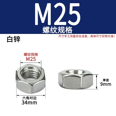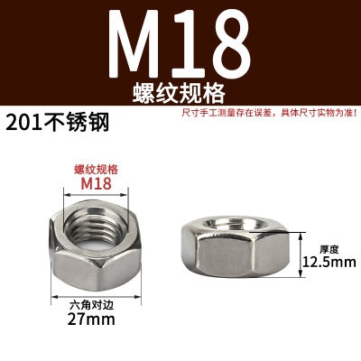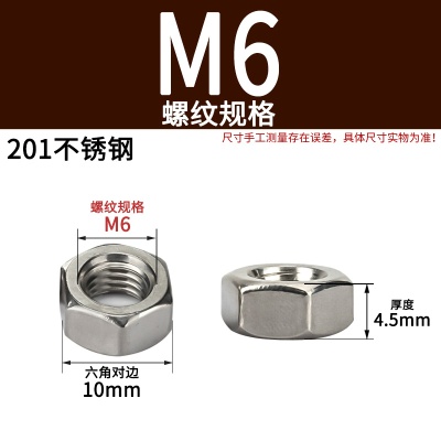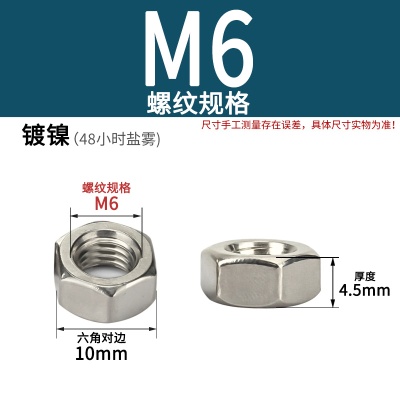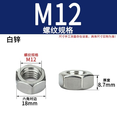 商品名称:六角螺母粗牙铁碳钢201不锈钢304 316白锌镀镍盐雾加大厚机械