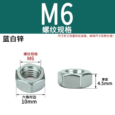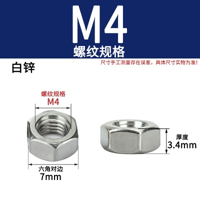 六角螺母(粗牙)M4加厚白锌