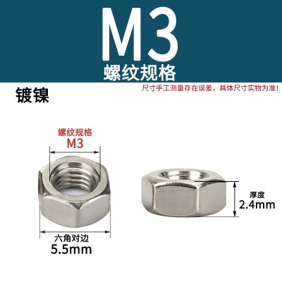 六角螺母(粗牙)M3加厚白锌