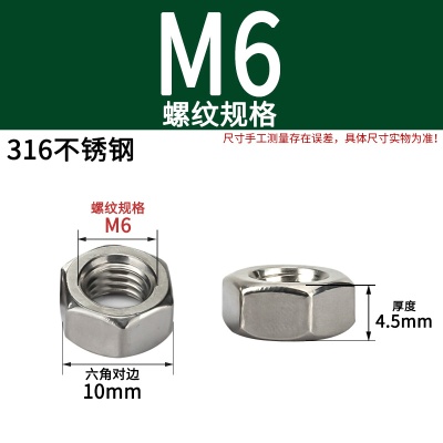 316不锈钢六角螺母(粗牙)M10