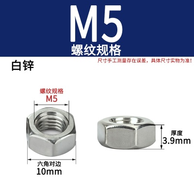 六角螺母(粗牙)M5白锌