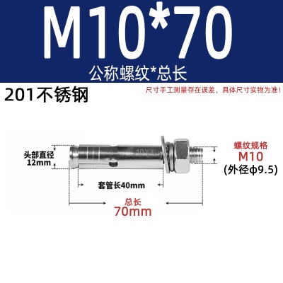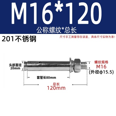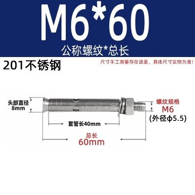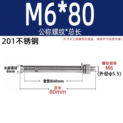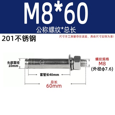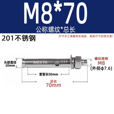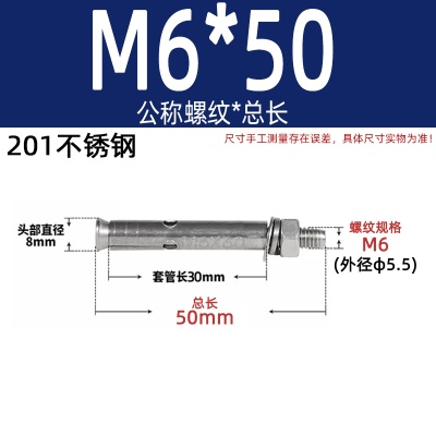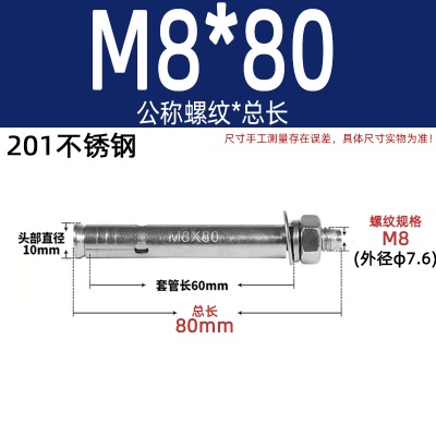 商品名称:膨胀螺丝201国标镀锌拉爆爆炸螺栓不锈钢加长彩锌M6M8M10M12M14