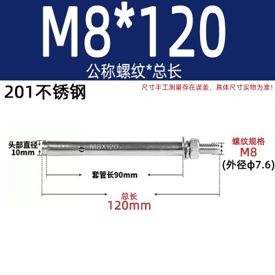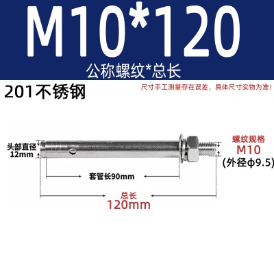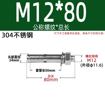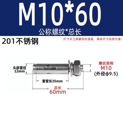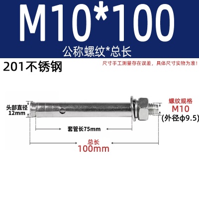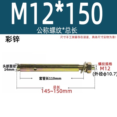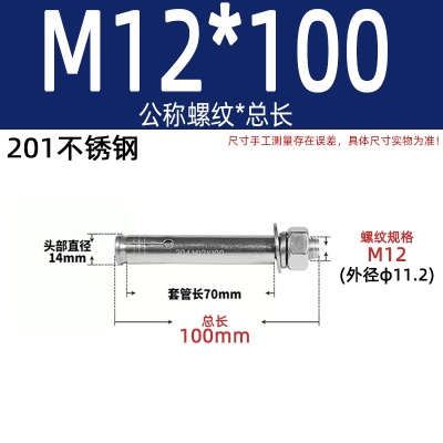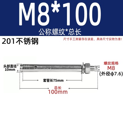 膨胀螺丝201国标镀锌拉爆爆炸螺栓不锈钢加长彩锌M6M8M10M12M14
