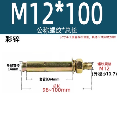 膨胀螺丝M8*70彩锌