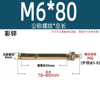 膨胀螺丝M6*80彩锌