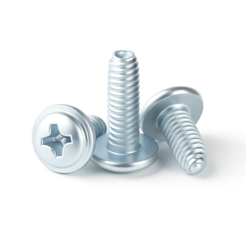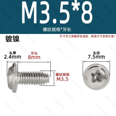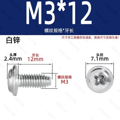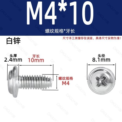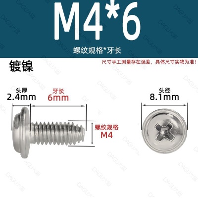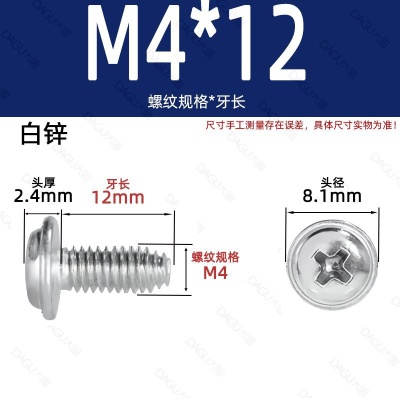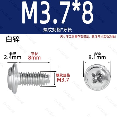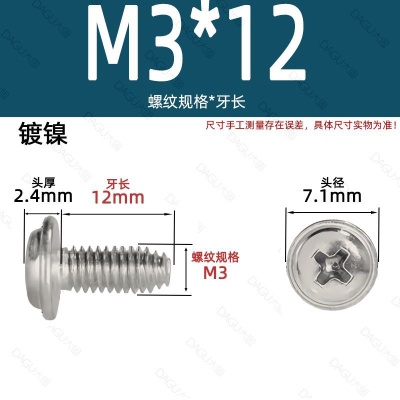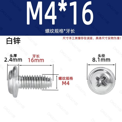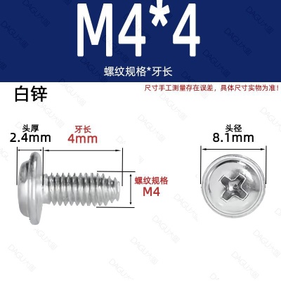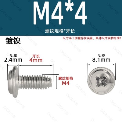 商品名称:带介缩嘴带垫缩咀缩嘴十字镀镍白锌螺钉压花防转螺丝非三角牙自锁
