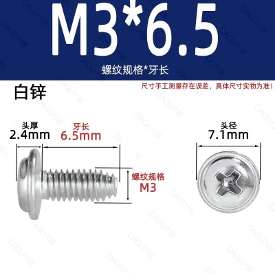 带介缩嘴M3*6.5(白锌)