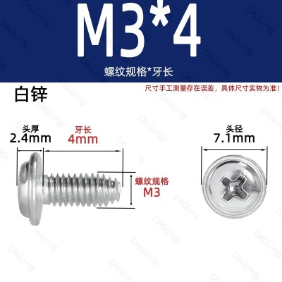 带介缩嘴M3*4(白锌)