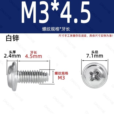 带介缩嘴M3*4.5(白锌)