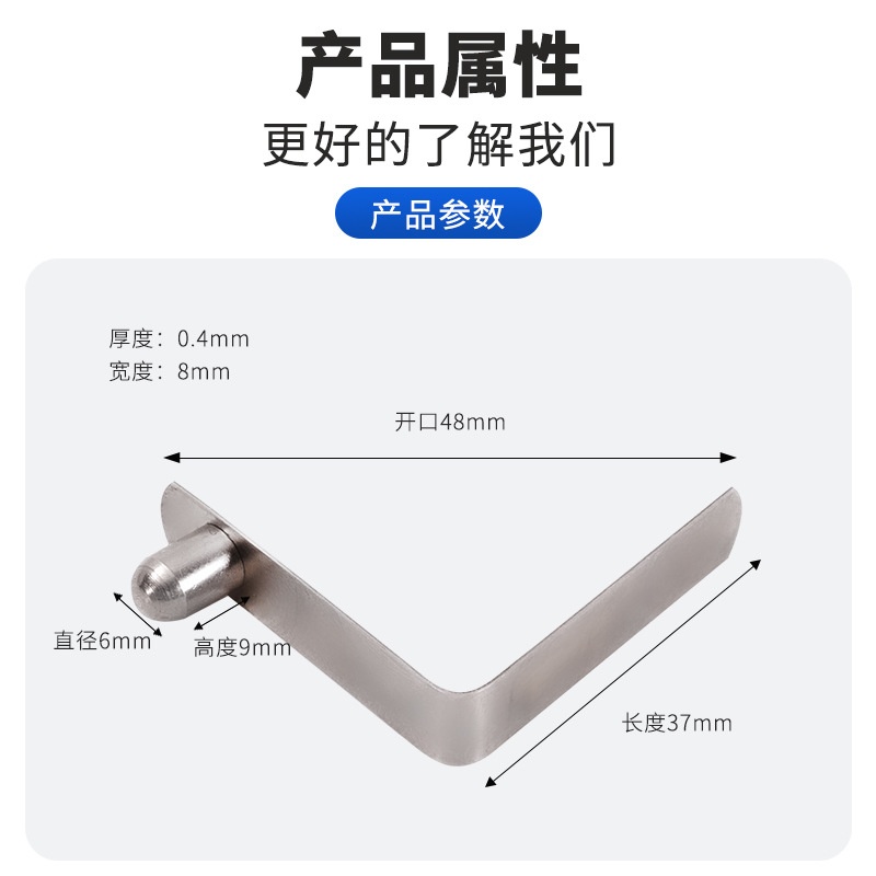 商品名称:不锈钢V型弹簧片实心旗杆拖把刮刮乐管内五金定位卡扣6x9x37