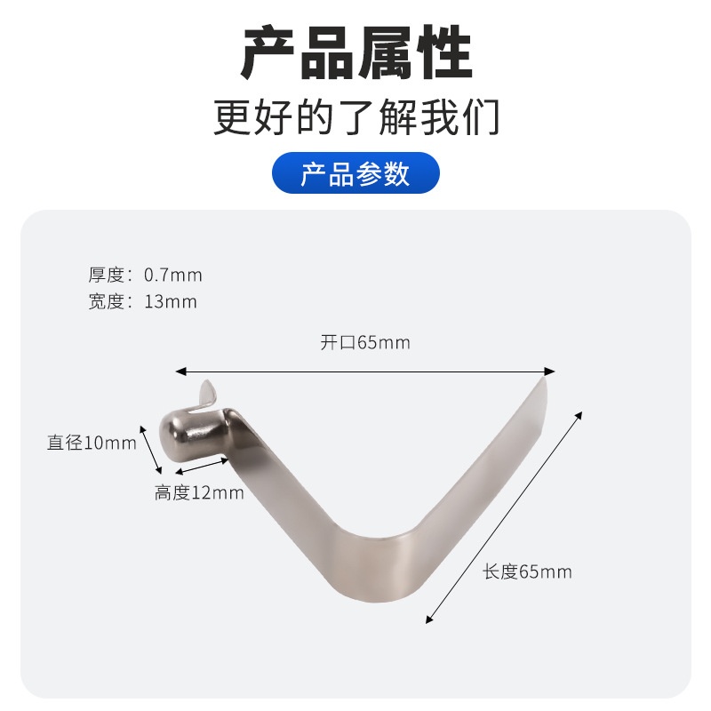 商品名称:V型弹簧片椅帐篷雨伞管内五金位定位弹片冲压件10x12x65mm0.7x13m