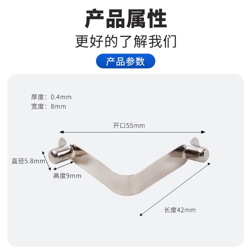 商品名称:v型U型弹簧片高弹性回弹性好自拍杆管内五金配件5.8×9×42mm